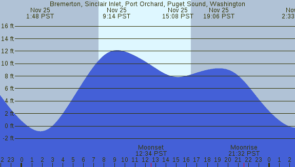 Tidal Heights at Bremerton, Sinclair Inlet, Port Orchard, Puget Sound, Washington