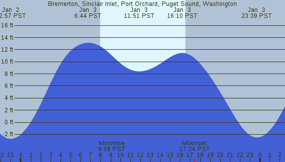 Tidal Heights at Bremerton, Sinclair Inlet, Port Orchard, Puget Sound, Washington