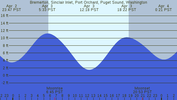 Tidal Heights at Bremerton, Sinclair Inlet, Port Orchard, Puget Sound, Washington