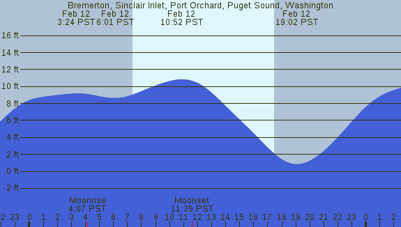 Tidal Heights at Bremerton, Sinclair Inlet, Port Orchard, Puget Sound, Washington