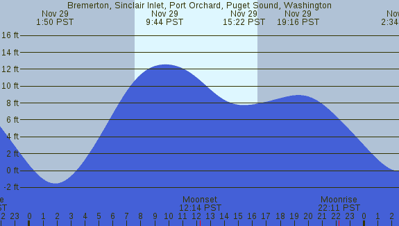 Tidal Heights at Bremerton, Sinclair Inlet, Port Orchard, Puget Sound, Washington