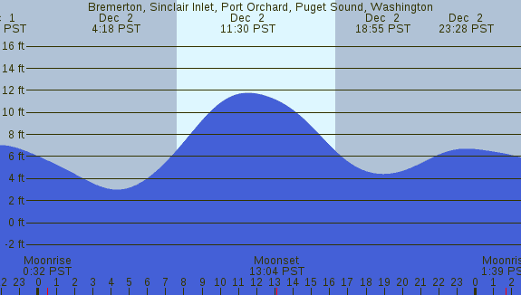 Tidal Heights at Bremerton, Sinclair Inlet, Port Orchard, Puget Sound, Washington