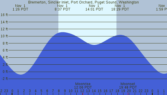 Tidal Heights at Bremerton, Sinclair Inlet, Port Orchard, Puget Sound, Washington