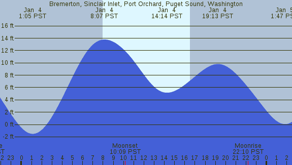 Tidal Heights at Bremerton, Sinclair Inlet, Port Orchard, Puget Sound, Washington