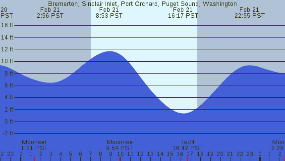 Tidal Heights at Bremerton, Sinclair Inlet, Port Orchard, Puget Sound, Washington