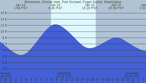 Tidal Heights at Bremerton, Sinclair Inlet, Port Orchard, Puget Sound, Washington