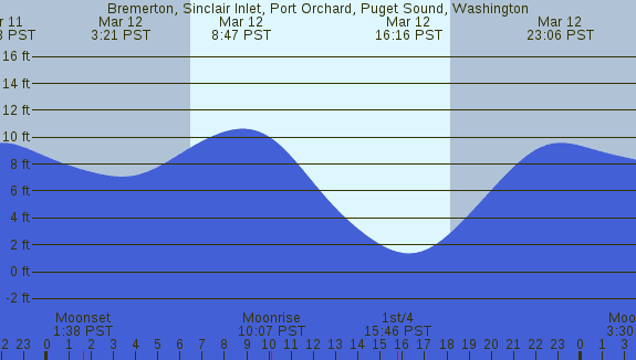 Tidal Heights at Bremerton, Sinclair Inlet, Port Orchard, Puget Sound, Washington