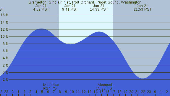 Tidal Heights at Bremerton, Sinclair Inlet, Port Orchard, Puget Sound, Washington