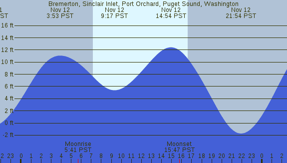 Tidal Heights at Bremerton, Sinclair Inlet, Port Orchard, Puget Sound, Washington