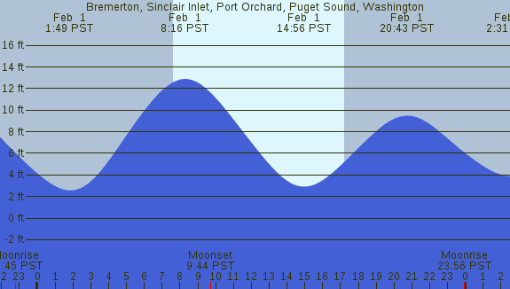 Tidal Heights at Bremerton, Sinclair Inlet, Port Orchard, Puget Sound, Washington