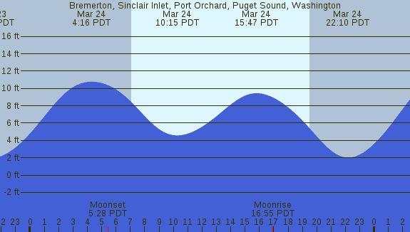 Tidal Heights at Bremerton, Sinclair Inlet, Port Orchard, Puget Sound, Washington