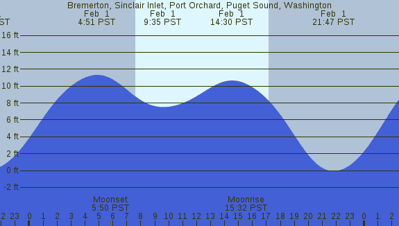 Tidal Heights at Bremerton, Sinclair Inlet, Port Orchard, Puget Sound, Washington