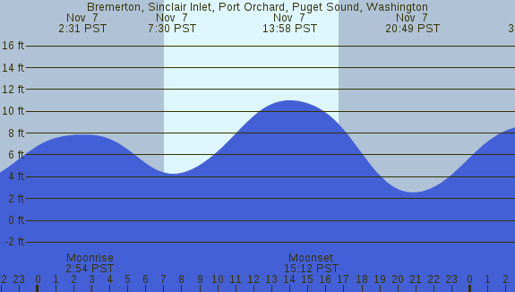 Tidal Heights at Bremerton, Sinclair Inlet, Port Orchard, Puget Sound, Washington