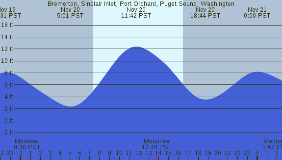 Tidal Heights at Bremerton, Sinclair Inlet, Port Orchard, Puget Sound, Washington