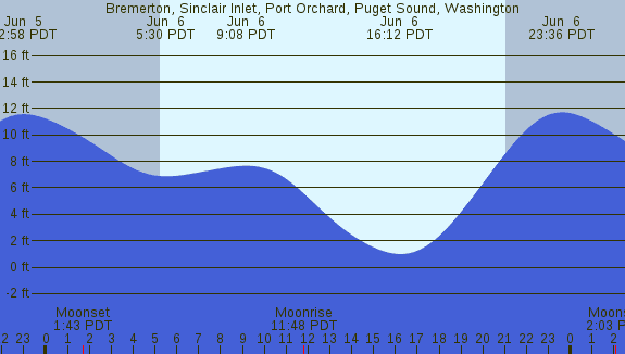 Tidal Heights at Bremerton, Sinclair Inlet, Port Orchard, Puget Sound, Washington