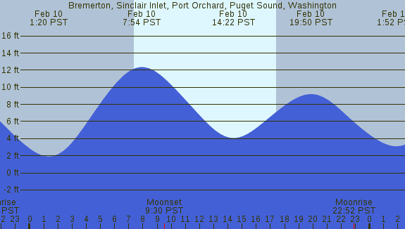 Tidal Heights at Bremerton, Sinclair Inlet, Port Orchard, Puget Sound, Washington
