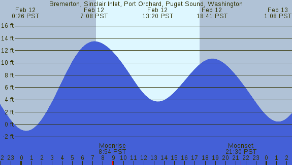 Tidal Heights at Bremerton, Sinclair Inlet, Port Orchard, Puget Sound, Washington