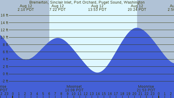 Tidal Heights at Bremerton, Sinclair Inlet, Port Orchard, Puget Sound, Washington
