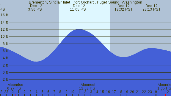 Tidal Heights at Bremerton, Sinclair Inlet, Port Orchard, Puget Sound, Washington