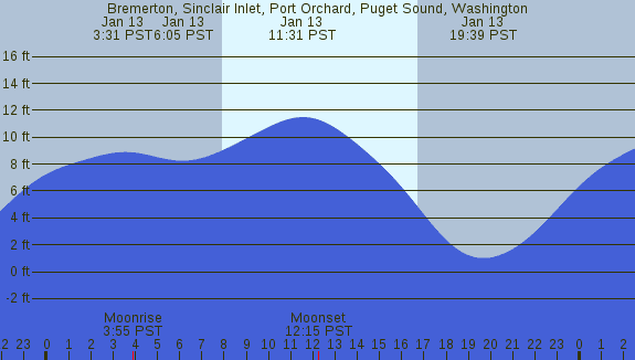 Tidal Heights at Bremerton, Sinclair Inlet, Port Orchard, Puget Sound, Washington