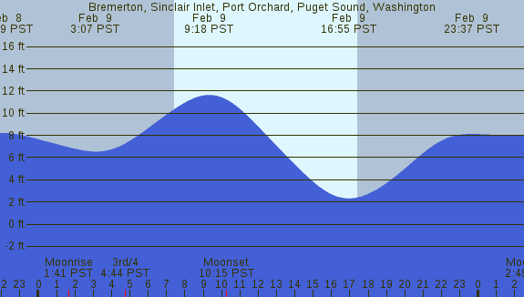 Tidal Heights at Bremerton, Sinclair Inlet, Port Orchard, Puget Sound, Washington
