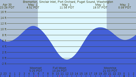Tidal Heights at Bremerton, Sinclair Inlet, Port Orchard, Puget Sound, Washington
