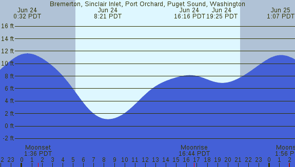 Tidal Heights at Bremerton, Sinclair Inlet, Port Orchard, Puget Sound, Washington