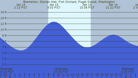 Tidal Heights at Bremerton, Sinclair Inlet, Port Orchard, Puget Sound, Washington