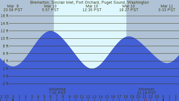 Tidal Heights at Bremerton, Sinclair Inlet, Port Orchard, Puget Sound, Washington