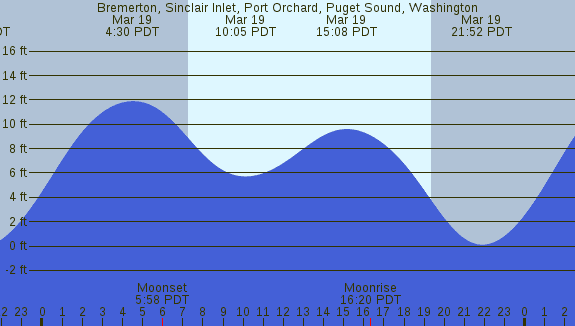 Tidal Heights at Bremerton, Sinclair Inlet, Port Orchard, Puget Sound, Washington