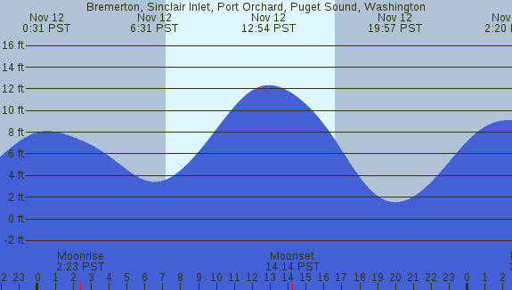 Tidal Heights at Bremerton, Sinclair Inlet, Port Orchard, Puget Sound, Washington