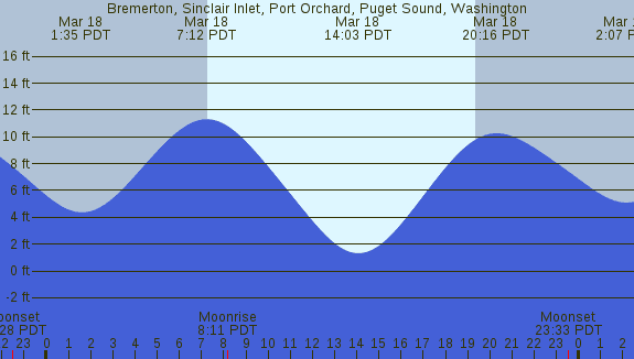 Tidal Heights at Bremerton, Sinclair Inlet, Port Orchard, Puget Sound, Washington