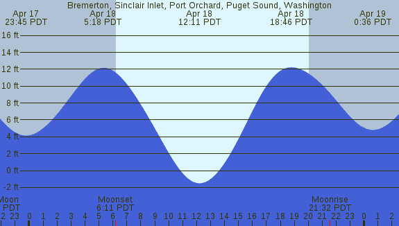 Tidal Heights at Bremerton, Sinclair Inlet, Port Orchard, Puget Sound, Washington