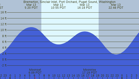Tidal Heights at Bremerton, Sinclair Inlet, Port Orchard, Puget Sound, Washington
