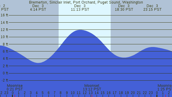 Tidal Heights at Bremerton, Sinclair Inlet, Port Orchard, Puget Sound, Washington