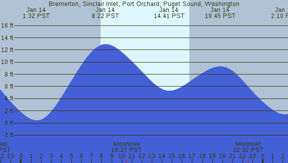 Tidal Heights at Bremerton, Sinclair Inlet, Port Orchard, Puget Sound, Washington