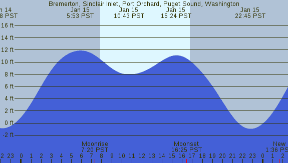 Tidal Heights at Bremerton, Sinclair Inlet, Port Orchard, Puget Sound, Washington