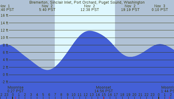 Tidal Heights at Bremerton, Sinclair Inlet, Port Orchard, Puget Sound, Washington