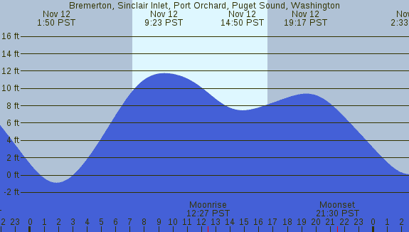 Tidal Heights at Bremerton, Sinclair Inlet, Port Orchard, Puget Sound, Washington