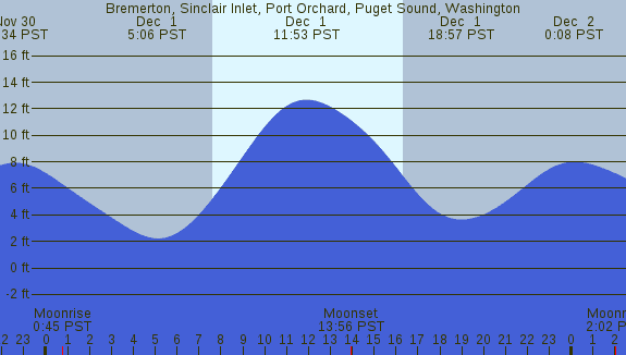 Tidal Heights at Bremerton, Sinclair Inlet, Port Orchard, Puget Sound, Washington