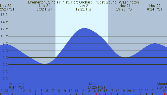 Tidal Heights at Bremerton, Sinclair Inlet, Port Orchard, Puget Sound, Washington
