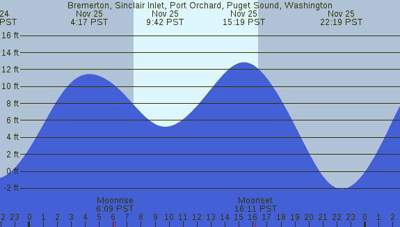 Tidal Heights at Bremerton, Sinclair Inlet, Port Orchard, Puget Sound, Washington
