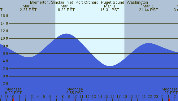 Tidal Heights at Bremerton, Sinclair Inlet, Port Orchard, Puget Sound, Washington