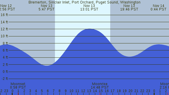 Tidal Heights at Bremerton, Sinclair Inlet, Port Orchard, Puget Sound, Washington