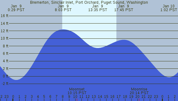 Tidal Heights at Bremerton, Sinclair Inlet, Port Orchard, Puget Sound, Washington