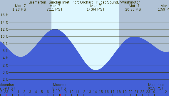 Tidal Heights at Bremerton, Sinclair Inlet, Port Orchard, Puget Sound, Washington