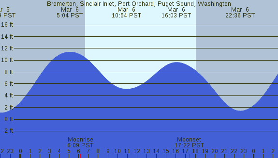 Tidal Heights at Bremerton, Sinclair Inlet, Port Orchard, Puget Sound, Washington