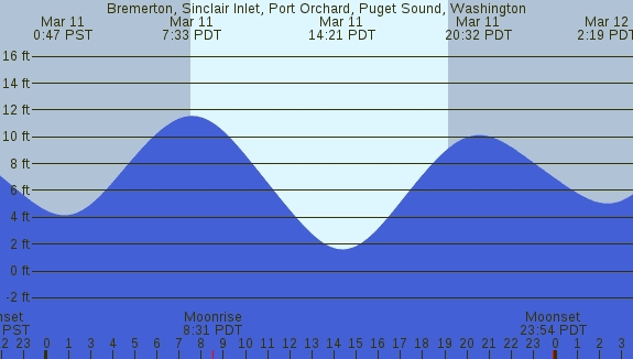 Tidal Heights at Bremerton, Sinclair Inlet, Port Orchard, Puget Sound, Washington