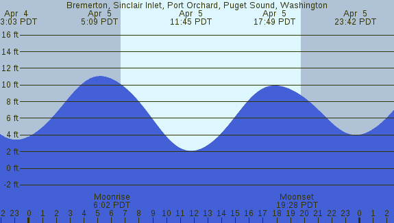 Tidal Heights at Bremerton, Sinclair Inlet, Port Orchard, Puget Sound, Washington