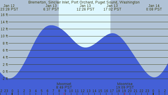 Tidal Heights at Bremerton, Sinclair Inlet, Port Orchard, Puget Sound, Washington